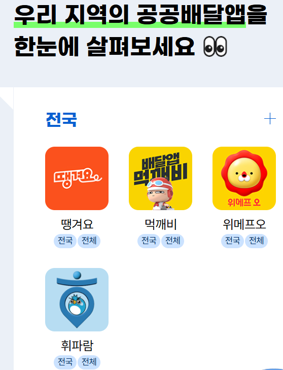 - 전국 공공배달앱 목록은 '공공배달 통합포털' ([https://www.atfis.or.kr/delivery)에서](https://www.atfis.or.kr/delivery)**에서) 확인할 수 있습니다.