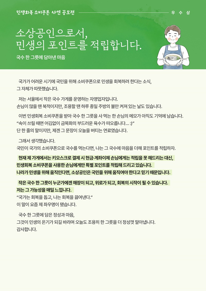 서울에서 작은 국수집을 운영하는 사장님은, 이 정책을 통해 손님들의 마음을 직접 느끼는 순간을 경험했습니다.