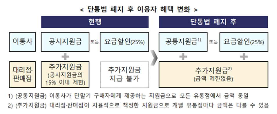 - 매장, 추가 지원금을 마음껏 줄 수 있어요: 동네 휴대폰 가게나 온라인 매장에서 '추가 지원금'이라는 걸 줬었는데, 그 금액이 제한되어 있었어요 (공시지원금의 15%까지만). 그런데 이제 이 상한선이 완전히 없어져요! 매장들이 손님을 유치하려고 추가 지원금을 팍팍 더 줄 수 있게 된다는 뜻이죠.