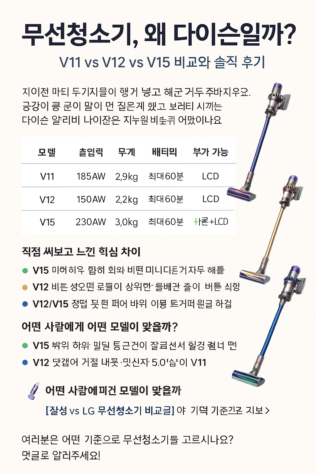 🔄 [2025년]무선청소기, 왜 다이슨일까? V11 vs V12 vs V15 비교와 솔직 후기