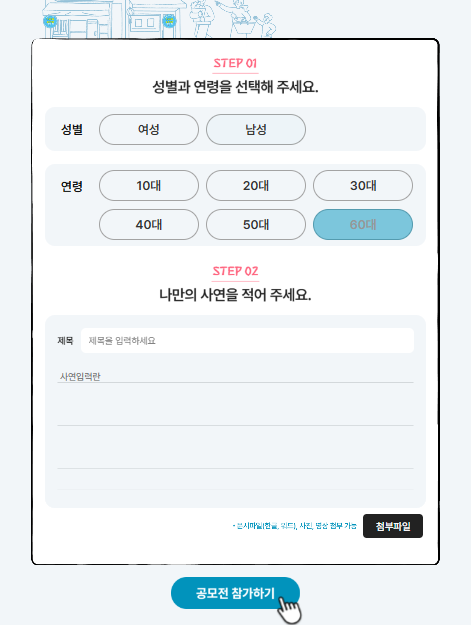 - 공모전 페이지 접속 후 온라인 양식 작성
