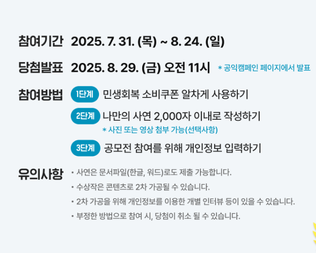 - 공모전 명: 민생회복 소비쿠폰 사연 공모전