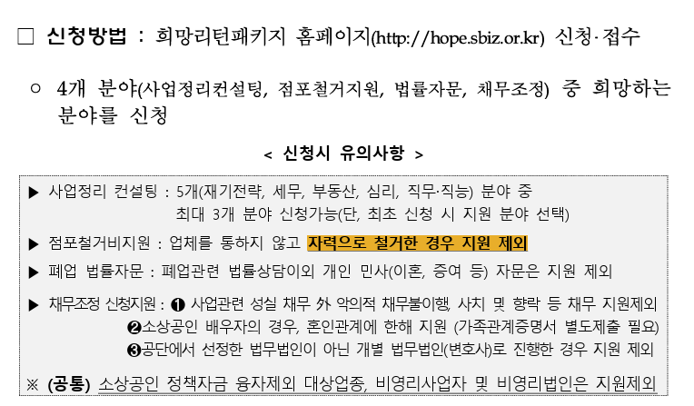 지금 당장 폐업한 상태가 아니더라도, 폐업을 고려하고 있다면 '예정자'로도 신청 가능하고요, 이미 폐업했더라도 5년 이내라면 OK!