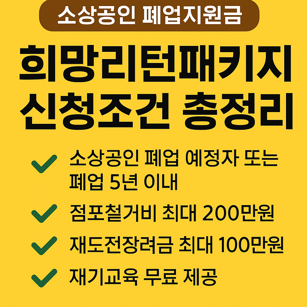 가게 철거하는 데도 돈이 많이 들죠. 희망리턴패키지를 통해 실비 기준으로 최대 200만 원까지 받을 수 있어요. 대상: 실제 점포 철거한 사람 필요한 서류: 임대차계약서, 철거 영수증, 사진 등