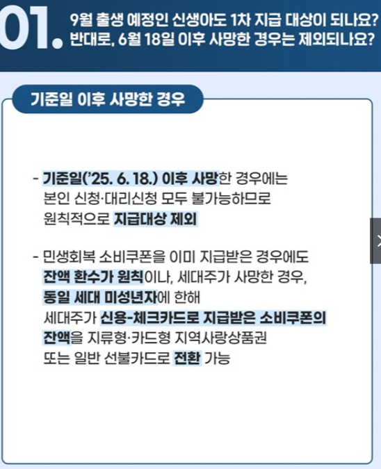 1. 신생아 및 사망자의 소비쿠폰 지급 여부