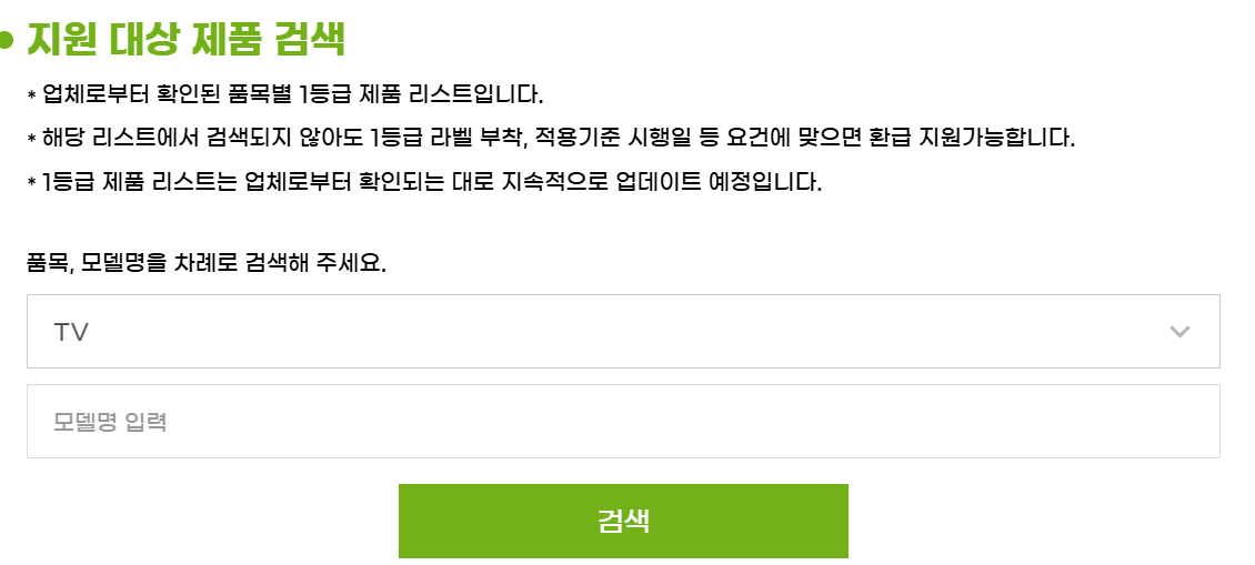 홈페이지에 가면 어떤 제품이 환급 대상인지 확인할 수 있고,