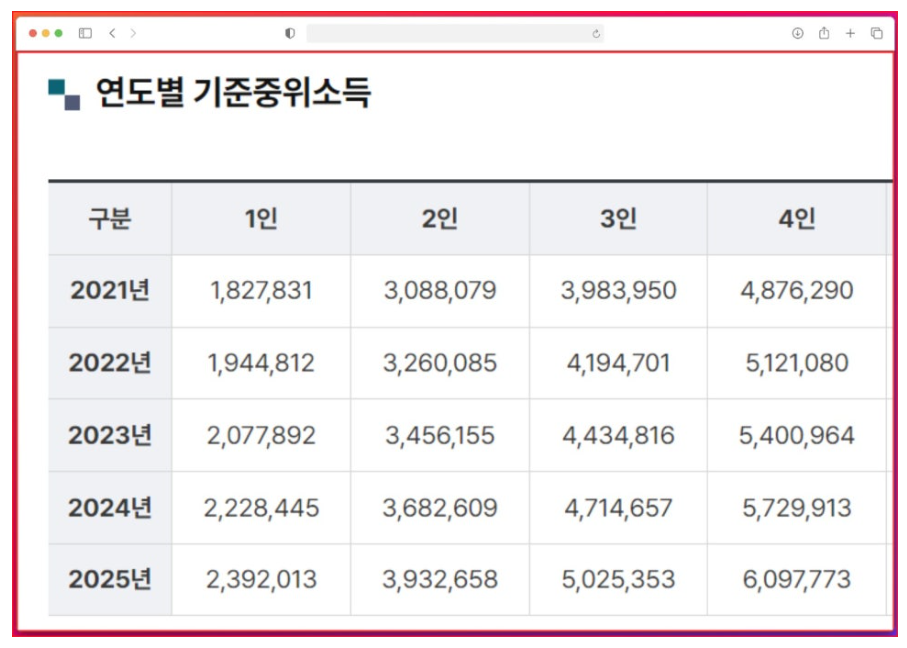 - 군장병급여, 육아휴직급여 등 일부 소득은 인정