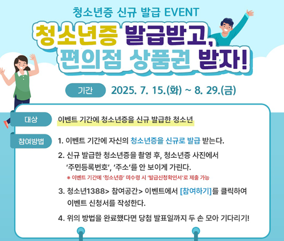 청소년증 발급하면 편의점 상품권까지! 2025 여름 특별 이벤트 안내