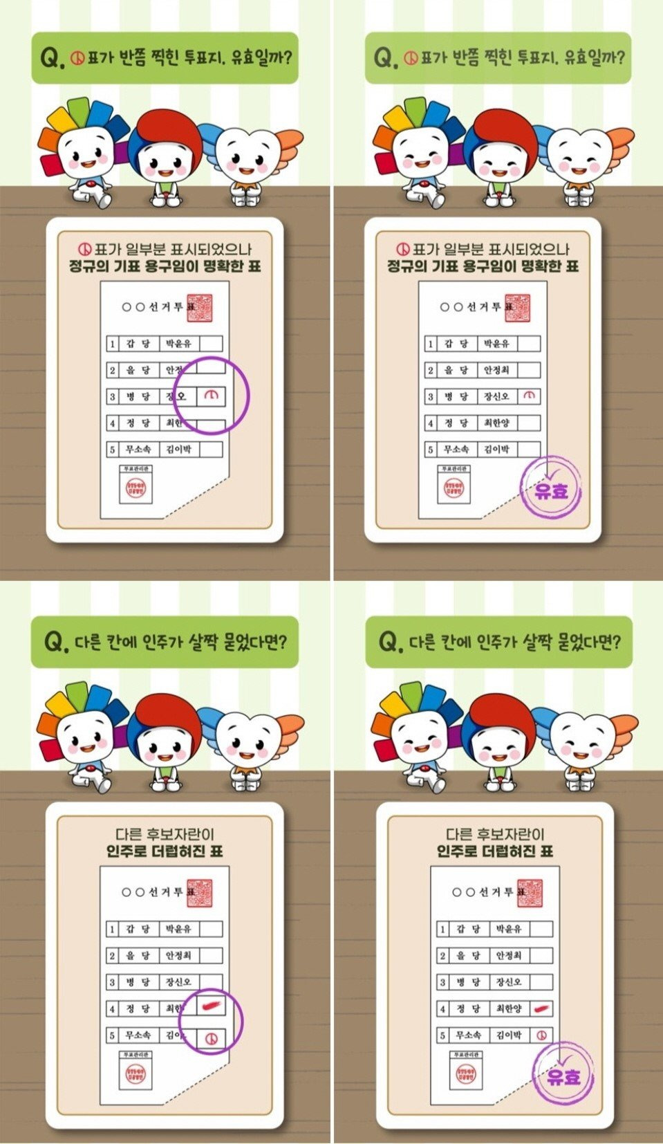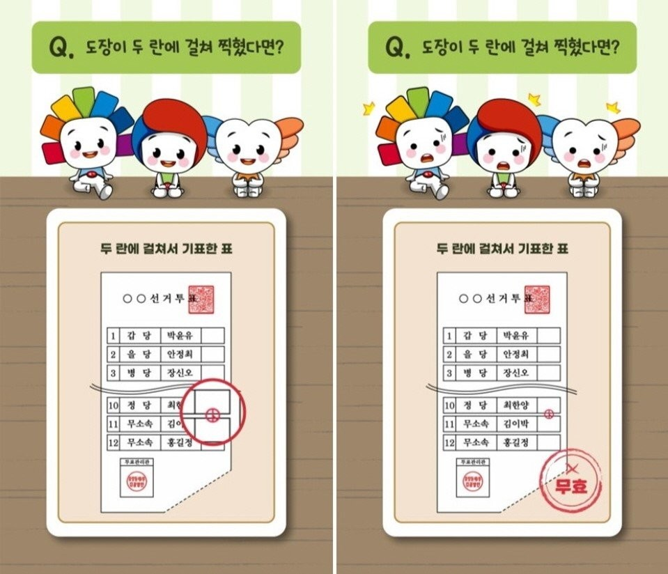 투표지 접었더니 다른후보자란에 도장이 번졌어요 이건 됩니다