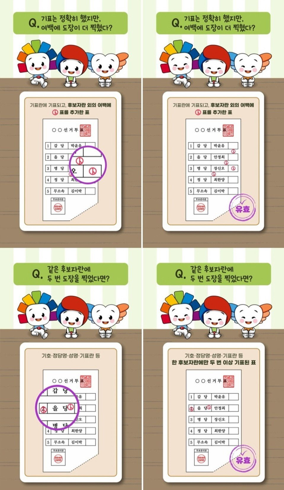 같은후보자란에 두번 도장찍어도 여백에 찍어도 유효표