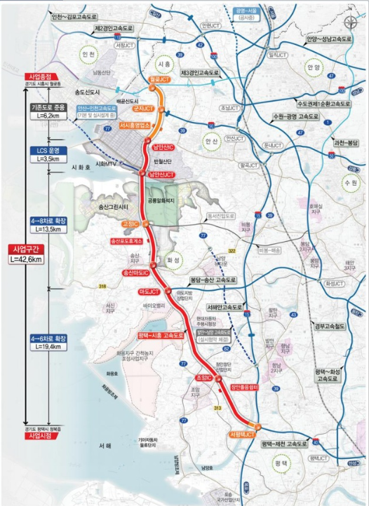 - 구간: 평택-시흥 고속도로 총연장 42.6km (서평택JCT ~ 월곶JCT) 중 36.4km 구간 (서평택JCT ~ 남안산IC)