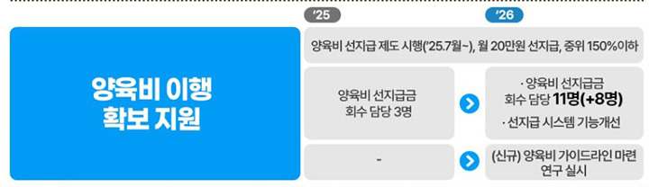 - 양육비 선지급금 회수를 위한 인력 13명 증원