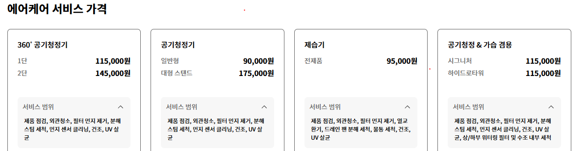 | 360˚ 청정기 (1단/2단) | 115,000/145,000원 | 분해 세척 + 필터 청소 + UV 살균 |